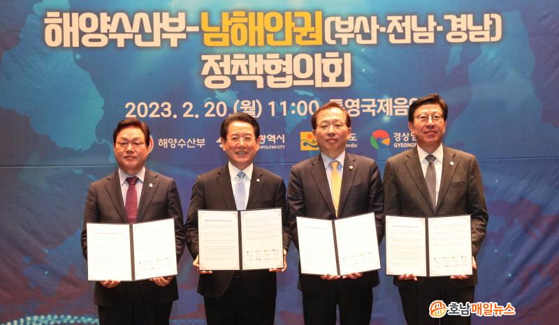 Á¶½Âȯ ÇØ¾ç¼ö»êºÎÀå°ü, ¹ÚÇüÁØ ºÎ»ê½ÃÀå, ±è¿µ·Ï Àü³²µµÁö»ç, ¹Ú¿Ï¼ö °æ³²µµÁö»ç´Â 20ÀÏ ¿ÀÀü °æ³² Å뿵½Ã Å뿵±¹Á¦À½¾Ç´ç¿¡¼ ¡®ÇؼöºÎ-³²ÇؾȱÇ(ºÎ»ê․Àü³²․°æ³²) Á¤Ã¥ÇùÀÇȸ¡¯¸¦ ¿¾î ³²ÇØ¾È±Ç ÇØ¾ç·¹Àú°ü±¤ Ȱ¼ºÈ ¾÷¹«Çù¾àÀ» Çß´Ù.