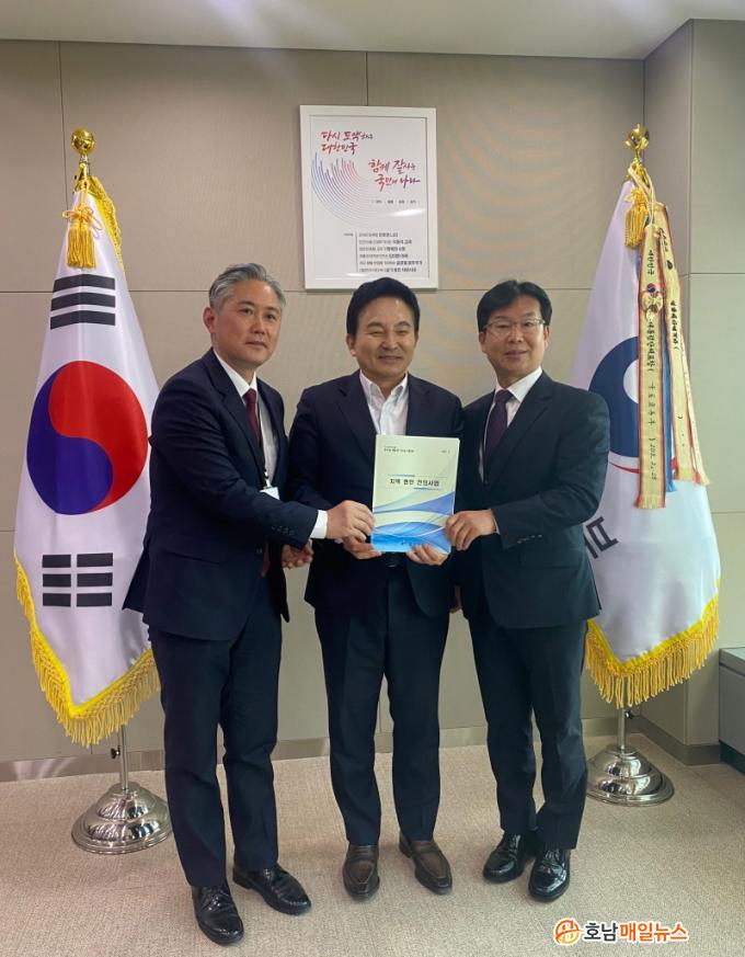 À̳¯ ¹Úº´±Ô ûÀåÀº ±¹¹ÎÀÇÈû ±¤Áֽôç(À§¿øÀå ±èÁ¤Çö) °ü°èÀÚµé°ú ÇÔ²² ±¹Åä±³ÅëºÎ¸¦ ¹æ¹®ÇØ ¿øÈñ·æ Àå°ü°ú ¸é´ãÀ» °¡Á³´Ù. ¸é´ã¿¡¼ ¹Úº´±Ô ûÀåÀº ±¤ÁÖ¼ÛÁ¤¿ª ¼±»ó¿ª»ç ÁõÃà ¼³°è¾È¿¡ ±¤Àå Á¶¼º ¹Ý¿µÀ» ºñ·ÔÇØ ±¤»ê±¸ ¿ÀÅäÄ·ÇÎÀå ÁøÀÔ·Î ¼³Ä¡»ç¾÷ ¿¹»ê Áö¿ø µîÀ» ¿äûÇß´Ù.