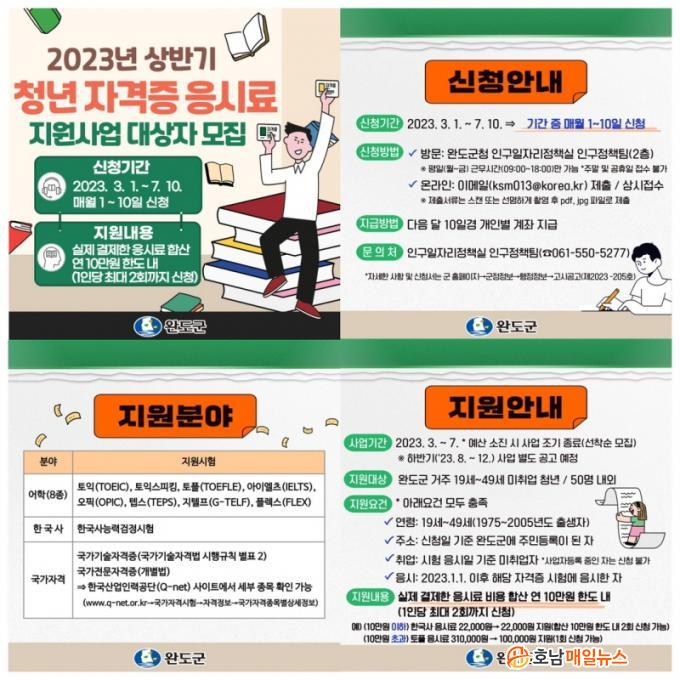 ÀÌ »ç¾÷Àº ¿ÃÇØ ±º¿¡¼´Â óÀ½ ½ÃÇàÇÏ´Â »ç¾÷À¸·Î ÀÚ°ÝÁõ ÃëµæÀ» À§ÇØ ³ë·ÂÇϴ û³âµéÀÇ °æÁ¦Àû ºÎ´ãÀ» ¿ÏÈÇϰíÀÚ ÃßÁøÇÏ°Ô µÆ´Ù.Áö¿ø ´ë»óÀº ½ÅûÀÏ ±âÁØ ¿Ïµµ±º¿¡ ÁÖ¼Ò¸¦ µÐ 19¼¼~49¼¼ ¹ÌÃë¾÷ û³âÀ̸ç, 2023³â 1¿ù 1ÀÏ ÀÌÈÄ ¾îÇÐ(8Á¾), Çѱ¹»ç, ±¹°¡ ÀÚ°ÝÁõ(±¹°¡ ±â¼ú ÀÚ°ÝÁõ, ±¹°¡ Àü¹® ÀÚ°ÝÁõ)À» ½ÇÁ¦·Î ÀÀ½ÃÇÑ Ã»³âÀÌ¸é ½ÅûÇÒ ¼ö ÀÖ´Ù.