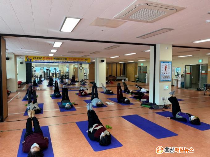 ¡°Ã»Ãá Çѹæ! °Ç°±³½Ç¡±Àº °íÇ÷¾Ð, ´ç´¢, °íÁöÇ÷Áõ, º¹ºÎºñ¸¸ µî ¸¸¼ºÁúȯ °ü¸®°¡ ÇÊ¿äÇÑ ¸¸¼ºÁúȯ À¯¼Ò°ßÀÚ 20¸íÀ» ´ë»óÀ¸·Î ÁÖ 2ȸ(È, ¸ñ) Áö³ 14ÀϺÎÅÍ 4¿ù±îÁö Áö¼ÓÀûÀ¸·Î ¿î¿µÇÏ¸ç ±Ù·Â°È¿îµ¿, ½ÉÆó±â´É Çâ»ó¿îµ¿, °ñ¹Ðµµ °È¿îµ¿, °Ç° ±â°øÃ¼Á¶ µî ´Ù¾çÇÑ ½ÅüȰµ¿°ú ÇÔ²² ¸¸¼ºÁúȯ ¿¹¹æ±³À° ¹× °Ç°Å×ÀÌÇÎ ¿ä¹ý µî À̷мö¾÷À¸·Î ±¸¼ºµÇ¾î ÀÖ´Ù.