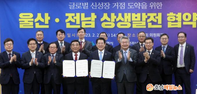 µÎ ½Ã․µµ´Â ÀÌ¿¡ ¾Õ¼ ±¹È¸ ÀÇ¿øÈ¸°ü¿¡¼ ±Û·Î¹ú ½Å¼ºÀå °ÅÁ¡ µµ¾àÀ» À§ÇØ Áö¹æÀçÁ¤, °æÁ¦, ¾ÈÀü, °ü±¤ µî 7°³ ºÐ¾ß ±³·ù․Çù·ÂÀ» ÃßÁøÇÏ´Â ³»¿ëÀÇ »ó»ý¹ßÀü Çù¾àÀ» Çϰí, ¡®Àü³²․¿ï»ê »ó»ý¹ßÀü °øµ¿ÇÕÀǹ®¡¯À» ¹ßÇ¥Çß´Ù. Çù¾à½Ä¿¡´Â ±è¿µ·Ï Áö»ç, ±èµÎ°â ½ÃÀå, ½ÅÁ¤ÈÆ ´õºÒ¾î¹ÎÁÖ´ç Àü³²µµ´çÀ§¿øÀå, ±Ç¸íÈ£ ±¹¹ÎÀÇÈû ¿ï»ê½Ã´ç À§¿øÀå µîÀÌ Âü¼®Çß´Ù.