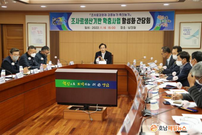 ¿µ¾Ï±ºÀº Áö³ ÇØ 11¿ù 16ÀÏ Á¶»ç·á»ý»êÀÇ ³»½ÇÀ» ´ÙÁö°í °ü·Ã »ç¾÷ÀÇ È°¼ºÈ¸¦ µµ¸ðÇϰíÀÚ Á¶»ç·á»ý»ê±â¹ÝÈ®Ãæ»ç¾÷ Ȱ¼ºÈ °£´ãȸ¸¦ °³ÃÖÇÏ¿´À¸¸ç, ±×¿¡ ´ëÇÑ ÈļÓÁ¶Ä¡·Î °æÁ¾¡¤Ãà»ê¡¤Á¶»ç·á³ó°¡ ¹× °ü·Ã ÇàÁ¤ºÎ¼ °ü°èÀÚ Çù¾÷ T/F¸¦ ±¸¼ºÇÏ¿© ¿î¿µ ÇØ¿À°í ÀÖ´Ù.