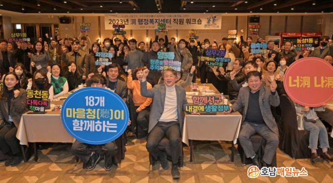 ¾Õ¼ ¼±¸´Â Áö³ 24ÀÏ 18°³ µ¿ ÇàÁ¤º¹Áö¼¾ÅÍ Á÷¿ø 150¿© ¸íÀ» ´ë»óÀ¸·Î ¹Î¿ø¼ºñ½º Áú Çâ»ó, ¼ÒÅë°ú Çù¾÷À» ÅëÇÑ È¿À²Àû Á¶Á÷¹®È Á¶¼ºÀ» À§ÇÑ ¿öÅ©¼óÀ» ÁøÇàÇϰí, °¢ µ¿ÀÇ ¿ì¼ö»ç·Ê¸¦ °øÀ¯Çß´Ù. <»çÁø>