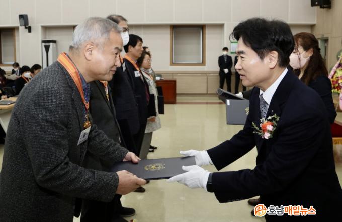 ÇÑÆí, ±è´ëÁß ±³À°°¨Àº ÀÌ ÀÚ¸®¿¡¼ ¿µ¿¹·Î¿î ÈÆ․Æ÷ÀåÀ» ¹ÞÀº ¼ö»óÀÚ¿Í °¡Á·µé¿¡°Ô Á¸°æ°ú °¨»çÀÇ ¸¶À½À» ÀüÇϸç, ¡°Àλý ÈĹÝÀüÀÇ Ãâ¹ßÀ» ÃàÇÏÇÏ°í ¾ÕÀ¸·Îµµ ¡®Àü³²±³À° ´ëÀüȯ¡¯ÀÇ ±æ¿¡ ¼±¹è ±³À°Àڷμ °æ·û°ú ÁöÇý¸¦ º¸Å´޶ó.¡±°í ´çºÎÇß´Ù.