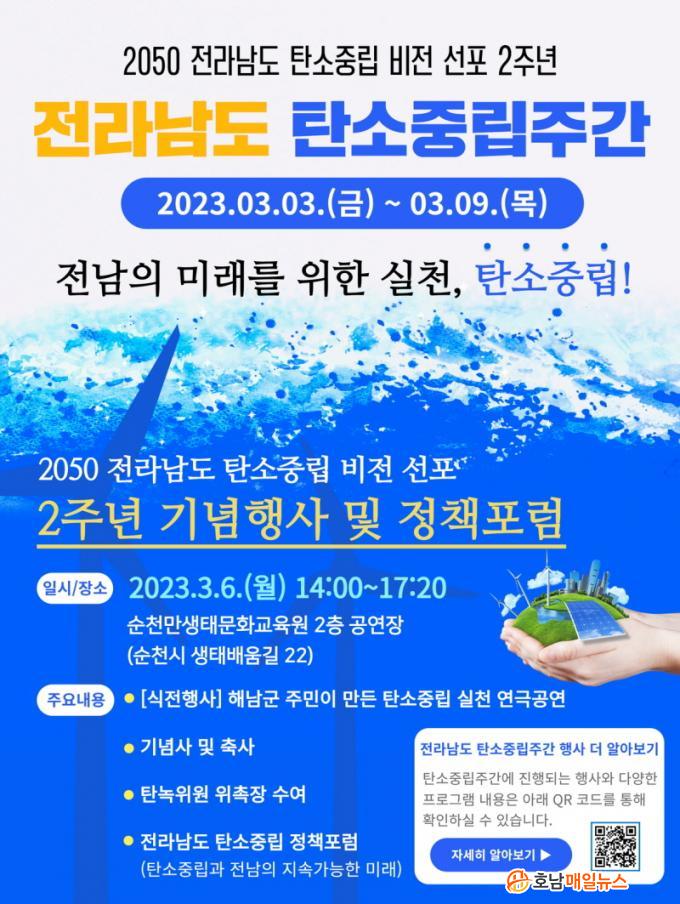 ÇÑÆí, Àü³²µµ´Â 2021³â 3¿ù 3ÀÏ ¡®Åº¼Ò ¾ø´Â °Ç°ÇÑ ¹Ì·¡, ûÁ¤ Àü³²¡¯À» ºñÀüÀ¸·Î 2050³â±îÁö ź¼ÒÁ߸³À» ¸ñÇ¥·Î ÇÏ´Â 2050 Àü¶ó³²µµ ź¼ÒÁ߸³ ºñÀüÀ» ¼±Æ÷Çß´Ù.