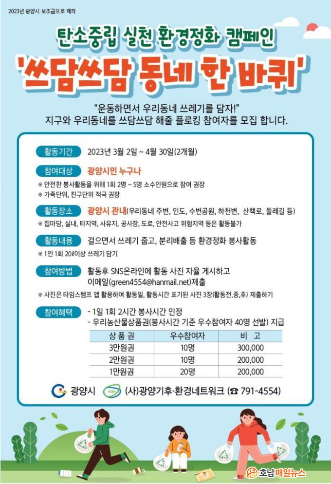 ¡®¾²´ã¾²´ã µ¿³× ÇÑ ¹ÙÄû Ç÷α롯 Ä·ÆäÀÎÀº ½Ã¹ÎÀÌ Âü¿©Çϴ ȯ°æÁ¤È Ȱµ¿°ú ºÐ¸®¹èÃâÀ» ÅëÇØ ÄèÀûÇÑ ±¤¾ç½Ã ȯ°æÀ» Á¶¼ºÇÏ°í »ýÅÂȯ°æ º¸È£¿¡ ´ëÇÑ ÀνÄÀ» ³ôÀ̱â À§ÇØ ¿ÃÇØ·Î 3ȸ° ÃßÁøÇϰí ÀÖ´Ù.