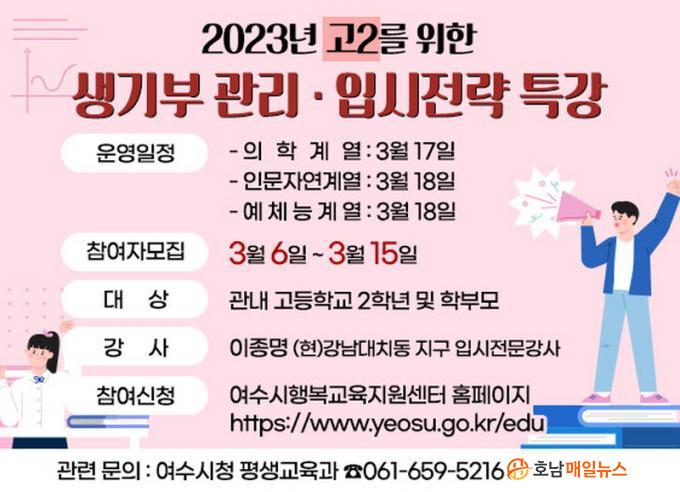 °ÀÇ´Â ¡ã17ÀÏ ±Ý¿äÀÏ ¿ÀÈÄ ÀÇÇÐ°è¿ ¡ã18ÀÏ Åä¿äÀÏ Àι®¡¤ÀÚ¿¬°è¿ ¡ã18ÀÏ ¿ÀÈÄ ¿¹Ã¼´É°è¿·Î ³ª´² ÁøÇàµÈ´Ù. ¸ðÁý ÀοøÀº ÃÑ 220¿© ¸íÀ¸·Î ´ëÇа迺°·Î ¸ðÁýÇϸç, Âü¿©¸¦ Èñ¸ÁÇÏ´Â °íµîÇлý 2ÇÐ³â ¹× Çкθð´Â ¿À´Â 15ÀϱîÁö ¿©¼ö½ÃÇູ±³À°Áö¿ø¼¾ÅÍ È¨ÆäÀÌÁö (www.yeosu.go.kr/edu)¿¡¼ ½ÅûÇÏ¸é µÈ´Ù.