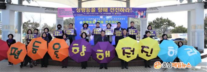 Àü³²¿©¼ºÀαǴÜü¿¬ÇÕ(ȸÀå Ȳ½Â¿Á) ÁÖÃÖ·Î ¿¸° À̳¯ Çà»ç¿¡´Â °ü°´ Áï¼® ¹ß¾ð, Àü³²¿©¼º¼±¾ð¹® ³¶µ¶, °Å¸®ÇàÁø µîÀ¸·Î ÁøÇàµÆ´Ù.