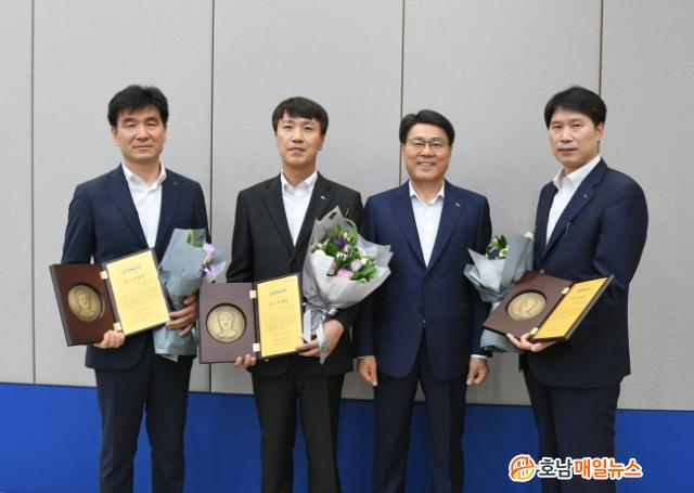 Æ÷½ºÄÚ ÃÖÁ¤¿ì ȸÀåÀº 7¿ù ±×·ì¿î¿µÈ¸ÀÇ¿¡¼ Æ÷Ç× EIC(Àü±â¼³ºñÁ¦¾î)±â¼úºÎ Á¤±ÔÁ¡ ºÎÀå, Æ÷Ç× ¼³ºñ±â¼úºÎ ÀÌÁ¤È£ °úÀå, ±¤¾ç µµ±ÝºÎ ¼Õº´±Ù Â÷Àå¿¡°Ô °¢°¢ Æ÷½ºÄÚ¸íÀå ÀÓ¸íÆÐ¸¦ ¼ö¿©Çß´Ù.