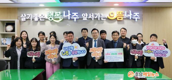 ³ªÁÖ½Ã(½ÃÀå À±º´ÅÂ)´Â Áö³ 9ÀÏ Çѱ¹³ó¾îÃ̰ø»ç ³ªÁÖÁö»ç(Áö»çÀå ÇÑÈÁø) ÀÓÁ÷¿øµéÀÌ °íÇâ»ç¶û±âºÎ±Ý 300¸¸¿øÀ» ±âŹÇß´Ù°í 10ÀÏ ¹àÇû´Ù. ±âºÎ¿¡´Â Çѱ¹³ó¾îÃ̰ø»ç ³ªÁÖÁö»ç¿Í ´õºÒ¾î ³ªÁÖ°¡ °íÇâÀÎ º»»ç ÀÓÁ÷¿øµéµµ ÇÔ²² Âü¿©ÇØ Àǹ̸¦ ´õÇß´Ù.