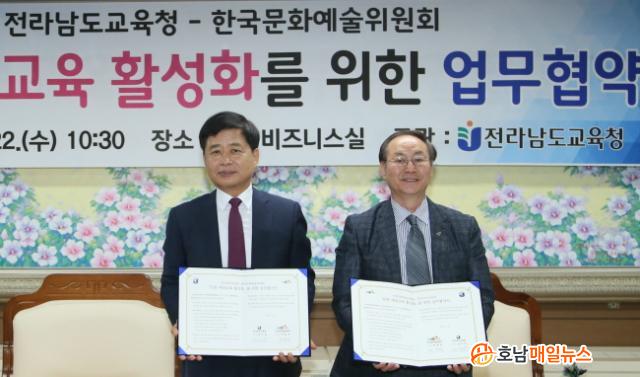 µÎ ±â°üÀº Çù¾àÀ» ÅëÇØ ÃÊ.Áß.°íµîÇлý ¹®È¿¹¼ú üÇèȰµ¿ Ȱ¼ºÈ, Àü³²Áö¿ª Çб³¿¹¼ú±³À° ¿ª·®°È Áö¿øÃ¼Á¦ ±¸Ãà, ±³»ç-¿¹¼ú°¡ ÇùÀÇü¸¦ ÅëÇÑ »õ·Î¿î ¿¹¼ú±³À°°úÁ¤ °øµ¿°³¹ß, ¿¹¼ú¿ä¿øÁ¦µµ¸¦ Ȱ¿ëÇÑ ¹®È ¼Ò¿Ü Áö¿ª ºÀ»çȰµ¿ µî º¸ÆíÀû Çб³¿¹¼ú±³À° Ȱ¼ºÈ¿Í Áö¿ª ¹®È‧¿¹¼ú±³À° Áö¿ø È®´ë µî¿¡ ±ä¹ÐÈ÷ Çù·ÂŰ·Î ÇÕÀÇÇß´Ù.