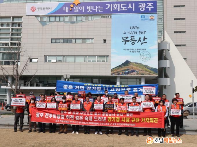 ±¤ÁÖ ÀüÅõºñÇàÀå ¹«¾È ÀÌÀü ¹Ý´ë ¹ü´ëÀ§(ÀÌÇÏ ¹ü´ëÀ§)¿Í ¹«¾È±º ÀÇȸ ±¤ÁÖ ±º°øÇ× ¹«¾È ÀÌÀü ¹Ý´ë Ưº°À§¿øÈ¸(ÀÌÇÏ ÀÇȸ ƯÀ§)´Â 3¿ù 10ÀÏ ±¤ÁÖ½Ãû ¾Õ¿¡¼ °±âÁ¤ ½ÃÀåÀÇ ¹ß¾ðÀ» ±ÔźÇÏ´Â ±ä±Þ ±âÀÚȸ°ßÀ» Çß´Ù.