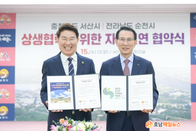 [È£³²¸ÅÀÏ´º½º] ¼øÃµ½Ã(½ÃÀå ³ë°ü±Ô)´Â 15ÀÏ ¼»ê½Ãû ´ëȸÀǽǿ¡¼ Ãæ³² ¼»ê½Ã¿Í ÀڸŰῬ Çù¾àÀ» ü°áÇß´Ù.
