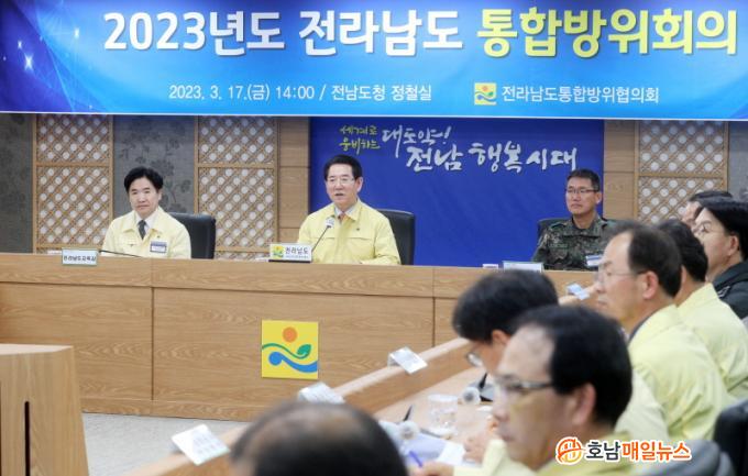 ÅëÇÕ¹æÀ§È¸ÀÇ¿¡¼± ±¹°¡Á¤º¸¿øÀÌ ¡®ºÏÇÑ ´ë³²À§Çù Àü¸Á¡¯, Àü³²µµ°¡ ¡®ÅëÇÕ¹æÀ§ ÃßÁø¼º°ú ¹× ¹æÇ⡯À» º¸°íÇß´Ù. Á¦31º¸º´»ç´Ü¿¡¼´Â ¡®2023³â ±º»ç ´ëºñ ¹æÇ⡯À» ¹ßÇ¥Çϰí À¯°ü±â°ü ÇùÁ¶¸¦ ¿äûÇß´Ù. À̾î ÁÖÁ¦ÅäÀÇ¿¡¼ Âü¼®ÀÚµéÀº ¡®ºÏ ÇÙ‧¹Ì»çÀÏ À§Çù°ú °í°µµ µµ¹ß ´ëºñ Áֹκ¸È£´ëÃ¥¡¯°ú ¡®Å×·¯‧»çÀ̹ö À§Çù ´ëºñ ¿ª·® °È¹æ¾È¡¯¿¡ ´ëÇÑ ´Ù¾çÇÑ ´ëÃ¥À» ³íÀÇÇÏ´Â µî µµ¹Î »ý¸í°ú ¾ÈÀüÀ» ÁöÄѳ»±â À§ÇÑ ½ÇÁúÀû ȸÀÇ·Î ¿î¿µÇß´Ù.