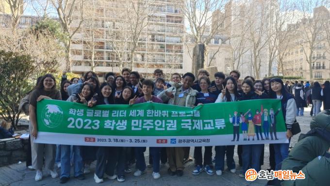 ÇÑÆí À̹ø ¡®2023 Çлý ¹ÎÁÖÀ뱂 ±¹Á¦±³·ù¡¯¿¡ Âü°¡ÇÑ ±¤ÁÖ ÇлýµéÀº ÇÁ¶û½º °³¼±¹® ¾Õ¿¡¼ À뱂 °ü·Ã ±¸È£¸¦ ¿ÜÄ¡¸ç À뱂 ÁõÁø Ä·ÆäÀΠȰµ¿À» ÆîÃÄ ½Ã¹Î ¹× °ü±¤°´µéÀÇ Å« È£ÀÀÀ» À̲ø¾î³Â´Ù. ÀÌ¿Í ÇÔ²² ÁÖÀ¯³×½ºÄÚ ´ëÇѹα¹´ëÇ¥ºÎ ¹æ¹® ¹× Á÷¿øµé°úÀÇ °£´ãȸ, ÁÖÀ¯³×½ºÄÚ ¹Ú»ó¹Ì ´ë»ç¿ÍÀÇ ¸¸³² µî ´Ù¾çÇÑ È°µ¿À» ÁøÇàÇß´Ù.