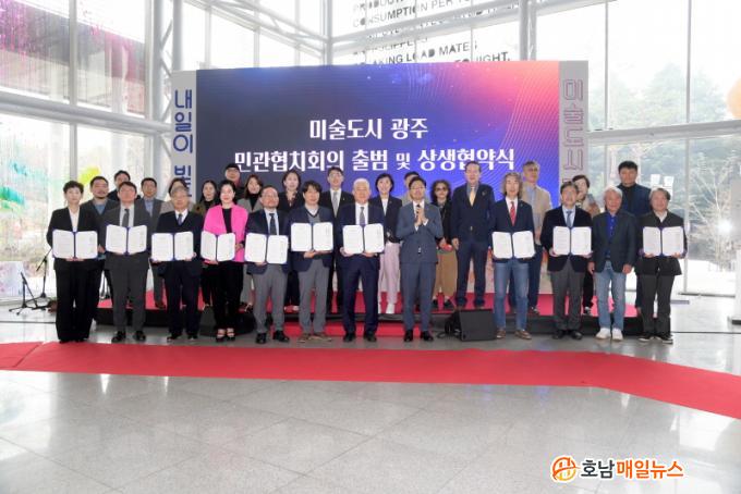 ±¤ÁÖ±¤¿ª½Ã(½ÃÀå °±âÁ¤)´Â 23ÀÏ ±¤Áֽø³¹Ì¼ú°ü 1Ãþ ·Îºñ¿¡¼ ±¤Áֹ̼ú¹®È¸¦ ¼±µµÇÏ´Â 12°³ ±â°ü¡¤´Üü¡¤Çùȸ¡¤Çаè¿Í 100¿© ¸íÀÇ ¹®È¿¹¼ú°è ÀλçµéÀÌ Âü¼®ÇÑ °¡¿îµ¥ ¡®¹Ì¼úµµ½Ã±¤ÁÖ ¹Î°üÇùġȸÀÇ¡¯¸¦ Ãâ¹üÇß´Ù.