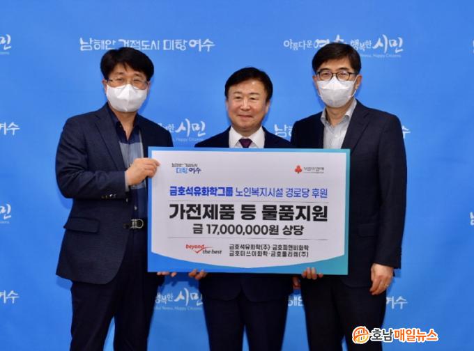¿©¼ö½Ã¿¡ µû¸£¸é 24ÀÏ ½ÃÀå½Ç¿¡¼ Á¤±â¸í ½ÃÀå, ±ÝÈ£¼®À¯ÈÇÐ(ÁÖ) Àå°©Á¾ °øÀåÀå, À̽Âö »ó¹«, ±ÝÈ£Æú¸®ÄÍ(ÁÖ) ÃÖ¿µ¼± Àü¹«°¡ Âü¼®ÇÑ °¡¿îµ¥ ÈÄ¿ø¹°Ç° Àü´Þ½ÄÀÌ ¿·È´Ù.