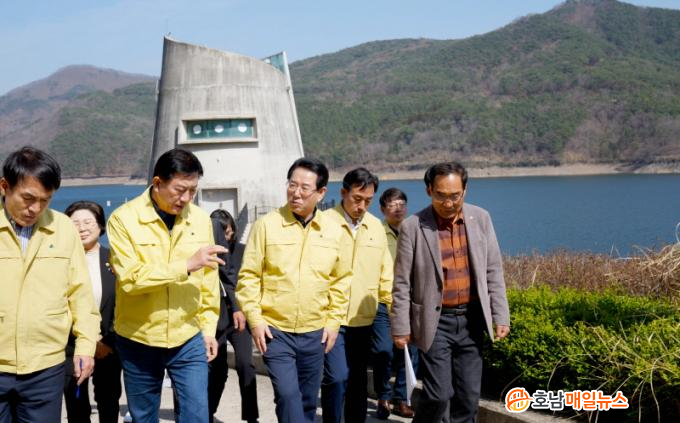 Àü³²µµ´Â ÇöÀç Àú¼öÀ²·Î 5¿ù ¸ð³»±â´Â ¹®Á¦°¡ ¾øÀ» °ÍÀ¸·Î Àü¸ÁµÇ³ª 5¿ù ¸»±îÁö ºñ°¡ ³»¸®Áö ¾ÊÀ¸¸é 6¿ù ¿µ³ó±â¿¡´Â ¿ë¼ö°¡ ºÎÁ·ÇÒ °ÍÀ¸·Î ¿¹»ó, Àú¼öÁö ¹° ä¿ì±â, °üÁ¤ °³¹ß, ¾ç¼öÀå ¼³Ä¡ µî °¡¹³´ëÃ¥À» ÃßÁøÇϰí ÀÖ´Ù. À̳¯ ÇöÀå¿¡´Â Çѱ¹³ó¾îÃ̰ø»ç¿Í À强±º °ü°èÀÚ°¡ ÇÔ²²ÇØ ¹°°ü¸® ÇöȲ°ú ÇâÈÄ ´ëÃ¥ µîÀ» °øÀ¯Çß´Ù.