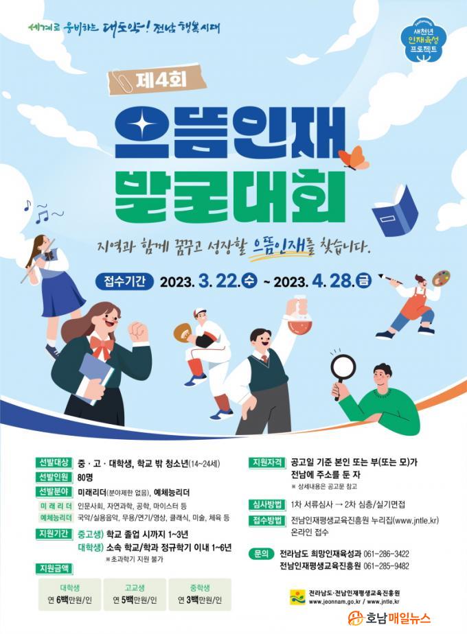 ¹Ì·¡ ¸®´õ¿Í ¿¹Ã¼´É ¸®´õ, 2°³ ºÐ¾ß·Î ³ª´² Áß․°í․´ëÇлý ¹× Çб³ ¹Û û¼Ò³â µî 80¸íÀ» ¼±¹ßÇÏ´Â À̹ø À¸¶äÀÎÀç ¹ß±¼´ëȸ´Â Àü³²ÀÎÀçÆò»ý±³À°ÁøÈï¿ø ´©¸®ÁýÀ» ÅëÇØ 4¿ù 28ÀϱîÁö ½ÅûÇÒ ¼ö ÀÖ´Ù.