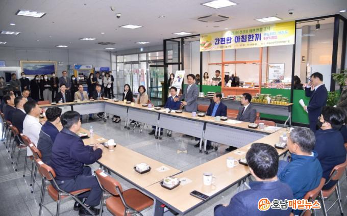 ±¤ÁÖ±¤¿ª½Ã(½ÃÀå °±âÁ¤)´Â 27ÀÏ ¿ÀÀü ±¤»ê±¸ Çϳ²±Ù·ÎÀÚÁ¾ÇÕº¹Áö°ü 1Ãþ¿¡¼ ¡®°£ÆíÇÑ ¾ÆÄ§Çѳ¢¡¯ °³¼Ò½ÄÀ» ÇÏ°í º»°ÝÀûÀÎ ½ÃÀÛ¿¡ ³ª¼¹´Ù.