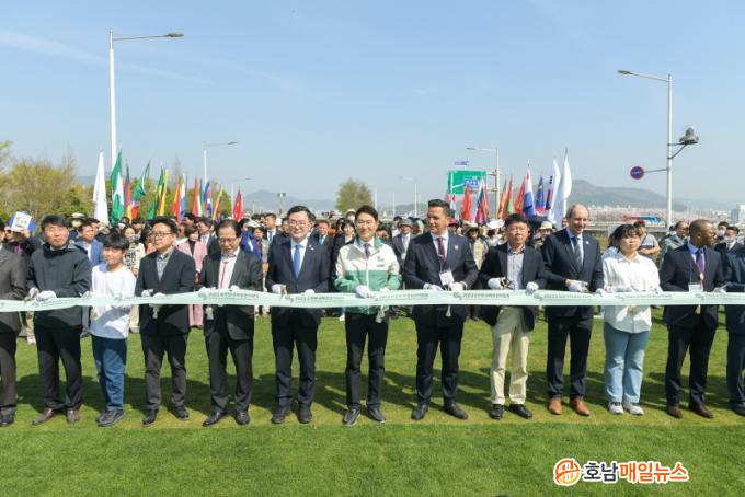 ³ë°ü±Ô ¼øÃµ½ÃÀå°ú °¢±¹ ´ë»ç, ½Ã¹Î°ú û¼Ò³âÀº ±×¸°¾ÆÀÏ·£µå¸¦ Ãâ¹ßÇØ ³²¹® ÀÔ±¸±îÁö ÇàÁøÇÑ ÈÄ ½ºÅ©¸°À» ÅëÇØ ±è ´ëÇ¥¿Í ÀÌ ´ëÇ¥ÀÇ ÃàÇÏ ¿µ»óÀ» ½ÃûÇß´Ù.