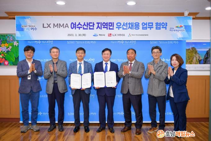 ¿©¼ö½Ã(½ÃÀå Á¤±â¸í)´Â Áö³ 30ÀÏ ¿ÀÈÄ ½ÃÀå½Ç¿¡¼ LX MMA¿Í ¡®¿©¼ö»ê´Ü Áö¿ª¹Î ¿ì¼±Ã¤¿ë¡¯ Çù¾àÀ» ü°áÇϰí û³âÀÏÀÚ¸® Á¦°ø°ú Áö¿ª¹ßÀüÀ» À§ÇØ ÈûÀ» ¸ðÀ¸±â·Î Çß´Ù°í 3ÀÏ ¹àÇû´Ù.
