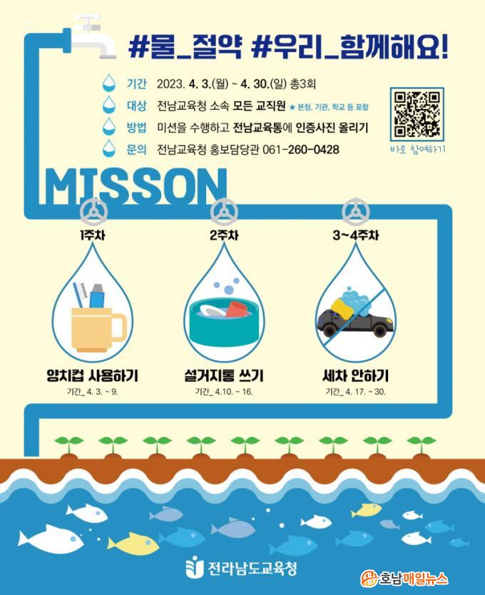 Àü³²±³À°Ã» ȨÆäÀÌÁö ¡®Àü³²±³À°Å롯ÀÇ ÀÎÁõ °Ô½ÃÆÇ¿¡ ¹° Àý¾à ½ÇõÀÎÁõ»çÁøÀ» Á÷Á¢ °Ô½ÃÇÏ´Â ¹æ½ÄÀÌ´Ù. Âü¿© ´ë»óÀº Àü³²±³À°Ã» ¼Ò¼Ó ±³Á÷¿øÀ̸ç, 4ÁÖ µ¿¾È 3°³ÀÇ ¹° Àý¾à ½Çõ °úÁ¦°¡ Á¦½ÃµÈ´Ù. ½Çõ °úÁ¦´Â ¡â 1ÁÖÂ÷: ¾çÄ¡ÄÅ »ç¿ëÇϱâ(4. 3. ~ 4. 9.) ¡â 2ÁÖÂ÷: ¼³°ÅÁöÅë »ç¿ëÇϱâ(4. 10. ~ 4. 16.) ¡â 3,4ÁÖÂ÷: 2ÁÖ µ¿¾È ¼¼Â÷ÇÏÁö ¾Ê±â(4. 17. ~ 4. 30.) µîÀÌ´Ù.