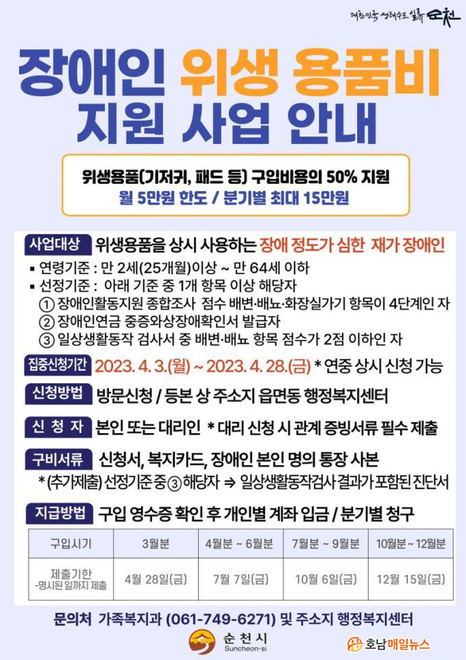 ¼øÃµ½Ã´Â À§»ý¿ëǰ ±¸ÀÔºñÀÇ 50%¸¦ ¸Å´Þ 5¸¸ ¿ø Çѵµ ³»¿¡¼ ºÐ±âº° ÇÕ»ê Áö¿øÇÑ´Ù. ÁýÁß ½Åû ±â°£ÀÎ 4¿ùÀ» ½ÃÀÛÀ¸·Î ´ë»óÀÚ¸¦ ¿¬Áß ¸ðÁýÇÑ´Ù.