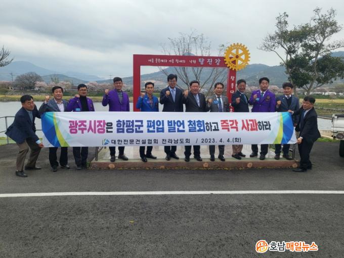 ´ëÇÑÀü¹®°Ç¼³Çùȸ Àü¶ó³²µµÈ¸´Â ¼º¸íÀ» ÅëÇØ ¡®ÇÔÆò±º Áֹΰú ½Ã․µµ¹ÎÀÇ ÀÇ»ç´Â ¹¯Áöµµ ¾Ê°í, Àü³²µµ¿Í´Â »çÀüÇùÀÇ ÀÏÀý ¾ø¾ú´ø °±âÁ¤ ½ÃÀåÀÇ ÇÔÆò ±¤ÁÖ ÆíÀÔ ¹ß¾ðÀº ±º °øÇ× ÀÌÀü¹®Á¦¸¦ ´õ¿í º¹ÀâÇÏ°Ô ¸¸µé¾ú´Ù¡¯°í ¸»Çß´Ù.