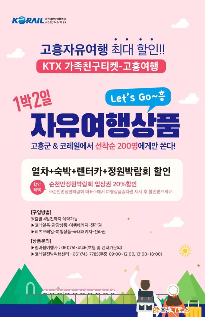 ¡®Let`s Go~Èï 1¹Ú2ÀÏ ÀÚÀ¯¿©Ç࡯ »óǰÀº ¼±Âø¼ø 200¸í¿¡°Ô¸¸ ÆÇ¸ÅµÇ¸ç, °íÈﱺÀÌ 1Àδç 5¸¸¿øÀÇ ¿©Çàºñ¿ëÀ» Áö¿øÇϰí ÄÚ·¹ÀÏ¿¡¼´Â KTX ¿îÀÓ ÇÒÀÎ µîÀ» Áö¿øÇØ ¿Â÷, ¼÷¹Ú, ·»ÅÍÄ«, ¼øÃµ¸¸Á¤¿ø¹Ú¶÷ȸ ÇÒÀÎÀÌ °áÇÕµÈ °íÈï¿©Çà»óǰÀ» ÃÊÆ¯°¡·Î ÀÌ¿ëÇÒ ¼ö ÀÖ´Ù.