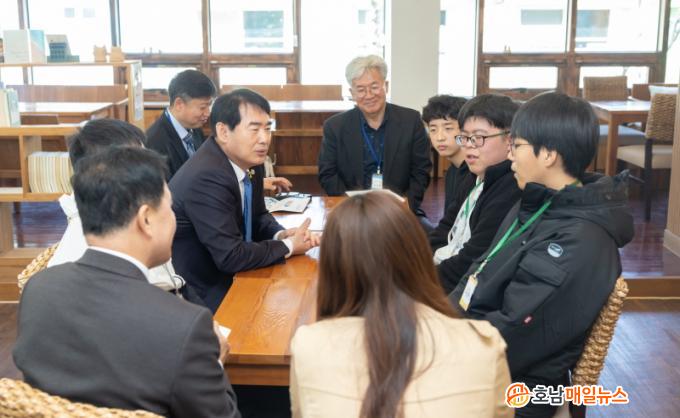 ÇÑÆí, ÀÌÁ¤¼± ±³À°°¨Àº Áö³ 10ÀÏ ±¤ÁÖ¼±±¤Çб³¸¦ ¹æ¹®ÇØ Æ¯¼öÇб³ Çб³±â¾÷ Á¾¸ñ °³Æí ÇöȲ°ú ±³À°È¯°æ °³¼±¿¡ ´ëÇÑ ÀǰßÀ» ûÃëÇß´Ù. Àü±³ ÇлýȸÀå, ºÎȸÀå µî 4¸íÀÇ ÇлýÀ» ¸¸³ª Çлý ÇѸí ÇѸíÀÇ ÀǰßÀ» µéÀ¸¸ç ÇлýµéÀ» °Ý·ÁÇϱ⵵ Çß´Ù.