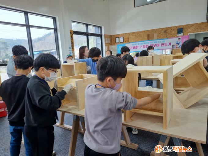 À̹ø ¸ñ°øÃ¼Çè ÇÁ·Î±×·¥¿¡ Âü¿©ÇÑ Ã»¼Ò³âµéÀº ¸ñÀ縦 ¼ÕÁúÇÏ¸é¼ ÀÚ½ÅÀÌ Á÷Á¢ µðÀÚÀÎÇÑ °¡±¸¸¦ ¸¸µé¾ú´Ù. ¸ñÀ縦 »çÆ÷ÁúÇÏ°í ¿ÀÀÏ ¸¶°¨À¸·Î Á¤¼º½º·´°Ô ¼Õ¼ö Á¦ÀÛÇÏ´Â °úÁ¤À» ÅëÇØ û¼Ò³âµéÀº Å« º¸¶÷À» ´À³¢¸ç ¸ñ°øÀÇ ¸Å·Â¿¡ ºüÁ³´Ù.