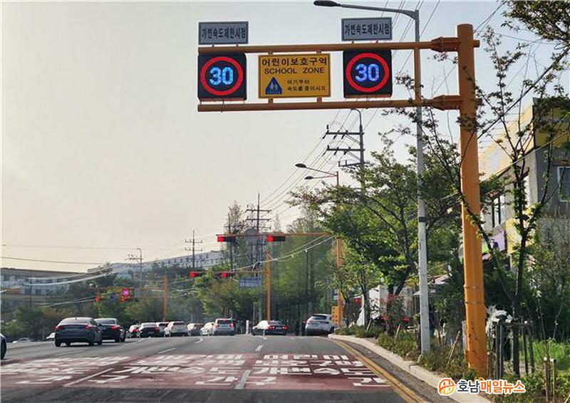 ÀÌ ½Ã½ºÅÛÀ» ¾î¸°ÀÌ º¸È£±¸¿ª¿¡ Àû¿ëÇÏ¿© ¾î¸°ÀÌÀÇ À̵¿ÀÌ ¸¹Àº ÁÖ°£(¿ÀÀü 8½Ã ~ ¿ÀÈÄ 8½Ã) ½Ã°£´ë¿¡´Â Â÷·® Á¦ÇѼӵµ¸¦ 30km/h·Î ¿î¿µÇϰí, ¾î¸°ÀÌÀÇ À̵¿ÀÌ ÀûÀº ¾ß°£(¿ÀÈÄ 8½Ã ~ ÀÍÀÏ ¿ÀÀü 8½Ã) ½Ã°£´ë´Â 50km/h·Î ¿î¿µÇÏ´Â °ÍÀÌ´Ù.