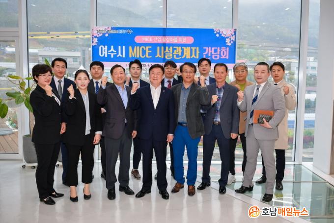 ¿©¼ö½Ã¿¡ µû¸£¸é Áö³ 14ÀÏ ¿ÀÈÄ ³ìÅ׸¶·¹¿¡¼ Á¤±â¸í ¿©¼ö½ÃÀåÀ» ºñ·ÔÇÑ MICE°ü·Ã ¼÷¹Ú½Ã¼³ ´ëÇ¥µéÀÌ Âü¼®ÇÑ °¡¿îµ¥ ¡®¿©¼ö½Ã MICE»ê¾÷ Ȱ¼ºÈ¸¦ À§ÇÑ ÃßÁø¹æÇ⡯À» ÁÖÁ¦·Î °£´ãȸ°¡ ¿·È´Ù