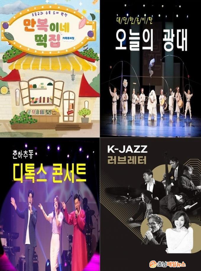 ÇϹݱ⠰ø¿¬Àº ¿ì¸®ÀÇ ¼Ò¸®¿Í ÀüÅë ±â¿¹¸¦ ¸¸³ª º¼ ¼ö ÀÖ´Â ÀüÅ뿹¼ú¡ã´ë´ÜÇÑ ³îÀÌÆÇ <¿À´ÃÀÇ ±¤´ë>(7¿ù 13ÀÏ), ±¹¾Ç°ú Æ®·ÔÀ» ÇÑÀÚ¸®¿¡¼ Áñ±æ ¼ö ÀÖ´Â ¡ãÃáÇÏÃßµ¿ <µðÅ彺 ÄܼƮ>(8¿ù 10ÀÏ), û¼Ò³âµé¿¡°Ô À§·Î¿Í Èñ¸ÁÀ» °Ç³×ÁÙ ¹ÂÁöÄáã<µð½ºÀÌÁîÀÕ(This is it)>(8¿ù 29ÀÏ), ¼·Î ´Ù¸¥ ¾î¸°À̵éÀÌ °³¼ºÀ» ÀÎÁ¤Çϸç ÈÇÕÀ» ÀÌ·ç´Â ¹ÂÁöÄáãij¸®¿Í Ä£±¸µé<ºü¶ó¹ã À¯Ä¡¿ø>(8¿ù 31ÀÏ), °¡¼ö ÁÖÇö¹Ì°¡ ÁøÇàÇϸç ÀçÁ °¨»óÇÒ ¼ö Àִ¡ãK-JAZZ<·¯ºê·¹ÅÍ> with ÁÖÇö¹Ì, À̰æ¿ì, ÇÊÀ±¹êµå(9¿ù 14ÀÏ)¸¦ °ø¿¬ÇÒ °èȹÀÌ´Ù.