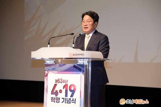 ³¡À¸·Î ° ½ÃÀåÀº ¡°4¡¤19Çõ¸íÀº ¿ì¸® ¿ª»ç¿¡¼ ½Ã¹ÎÀÇ ÈûÀ¸·Î µ¶À縦 ¹«³Ê¶ß¸®°í ¹ÎÁÖÁÖÀǸ¦ ÁöÄѳ½ ù ¹øÂ° ½Ã¹ÎÇõ¸íÀ¸·Î, 4¡¤19Çõ¸íÀÇ Á¤½ÅÀº ´ëÇѹα¹ÀÇ ¹ÎÁÖÁÖÀǰ¡ À§Çù¹ÞÀ» ¶§¸¶´Ù ¹ÎÁÖÈÀÇ ´ëÀåÁ¤À» ÇìÃÄ ³ª°¥ ÈûÀ» ÁÖ¾ú´Ù¡±¸ç ¡°ÀÌ ¶¥ÀÇ ÀÚÀ¯¿Í Á¤ÀÇ, ¹ÎÁÖÁÖÀǸ¦ ÁöÄÑÁֽйÎÁÖ¼±¿µéÀÇ Èñ»ý°ú Çå½Å¿¡ °æÀǸ¦ Ç¥ÇÑ´Ù. ³»³â¿¡´Â ¿ì¸® ¹Ì·¡¼¼´ë°¡ ¹è¿ì°í ÀÍÈ÷´Â ±× Çб³ ÇöÀå¿¡¼, Çõ¸íÀÇ »ê½Ç¿¡¼ ¸¸³ª±â¸¦ °£Ã»µå¸°´Ù¡±°í ¸»Çß´Ù.