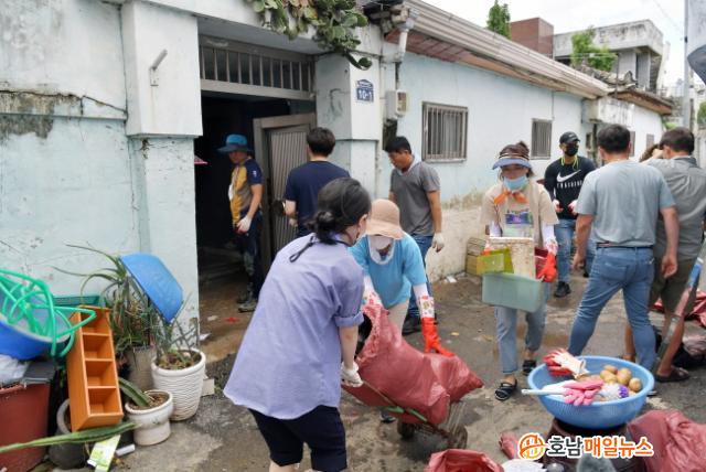 À̳¯ º¹±¸ÀÛ¾÷¿¡ Âü°¡ÇÑ °ø¹«¿ø, ÀÚ¿øºÀ»çÀÚµéÀº ÇÇÇØÁö¿ª Åä»ç, ºÎÀ¯¹° Á¦°Å, ÇÇÇØ ÁÖÅà ¹× »ó°¡ ³»ºÎû¼Ò ¹× °¡Àçµµ±¸µéÀ» Á¤¸®Çß´Ù. 10ÀϺÎÅÍ ¼±¸´Â ±¤ÁÖ´ë±³¿¡¼ ±¤Ãµ2±³ »çÀÌ¿¡ À§Ä¡ÇÑ 3°³ ±¸°£À» ´ë»óÀ¸·Î °í¼öºÎÁö ÀÀ±Þº¹±¸ ¹× ÀÜÀç¹° ¼ö°Å¿¡ ÁýÁßÇÒ ¹æÄ§ÀÌ´Ù.