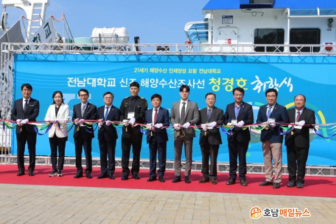 ÇÑÆí, ¹Úº¹Àç ºÎÃÑÀåÀº ȯ¿µ»ç¸¦ ÅëÇØ ¡°Ã»°æÈ£´Â ÃÖ÷´Ü ¿îÇ×Àåºñ¿Í ÇØ¾ç¿¬±¸¡¤Á¶»ç ½Ã½ºÅÛÀÌ Å¾ÀçµÈ ÃÖ½ÅÇØ¾ç¼ö»êÁ¶»ç¼±À¸·Î Àü³²´ëÇб³ÀÇ Á¦2ÀÇ ÇØ¾çÄ·ÆÛ½º·Î¼ ÀÚ¸® Àâ¾Æ ÇØ¾ç¿¬±¸ ¹× Á¶»çºÐ¾ßÀÇ ±¹À§¼±¾ç°ú À§»óÁ¦°í¿¡ ±â¿©ÇÏ±æ ¹Ù¶õ´Ù¡±°í ¸»Çß´Ù.