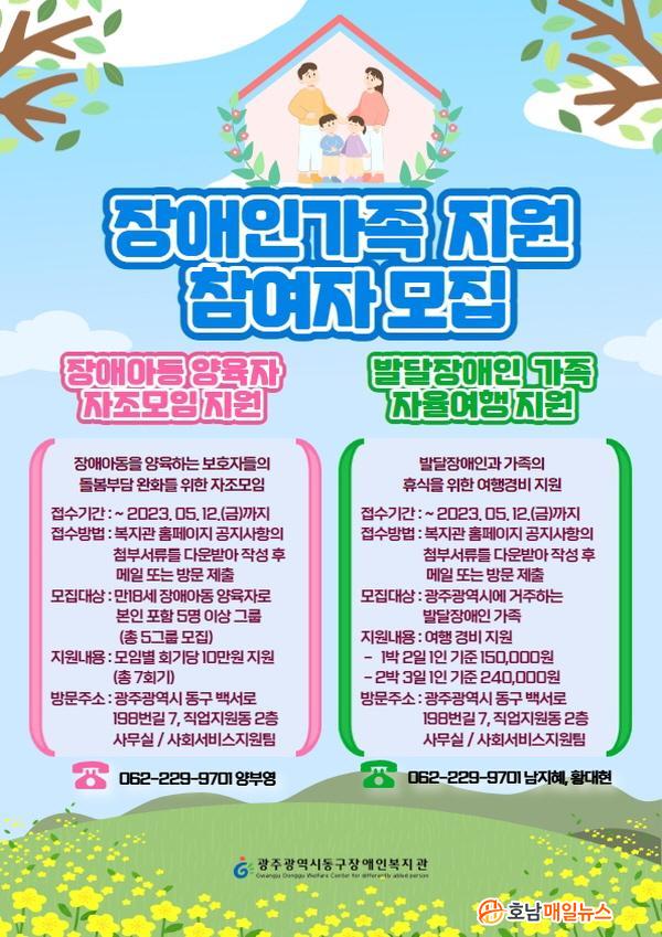 ¹ß´ÞÀå¾ÖÀÎ °¡Á· ¿©Çà Áö¿øÀº ±¤ÁÖ±¤¿ª½Ã¿¡ °ÅÁÖÇϰí ÀÖ´Â ¹ß´ÞÀå¾ÖÀÎ ¹× ¹ß´ÞÀå¾ÖÀÎ °¡Á·À̶ó¸é ´©±¸³ª ½Åû°¡´É Çϸç, 1¹Ú 2Àϰú 2¹Ú 3ÀÏ Áß ¼±ÅÃÇÏ¿© ¿©Çà °æºñ(1Àδç 15¸¸¿ø, 24¸¸¿ø)¸¦ Áö¿øÇÑ´Ù. À̸ÞÀϰú º¹Áö°ü ¹æ¹®À» ÅëÇØ Á¢¼öÇÒ ¼ö ÀÖ´Ù.