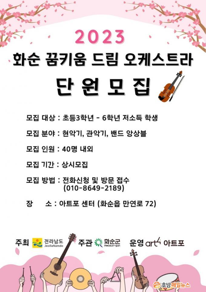 ȼø±º °ø¸ð¸¦ ÅëÇØ ¼±Á¤µÈ ¡®¾ÆÆ®Æ÷ ¼¾ÅÍ¡¯¿¡¼´Â ²ÞŰ¿ò µå¸² ¿ÀÄɽºÆ®¶ó ¿î¿µÀ» À§ÇØ °ü³» °ÅÁÖ Àú¼ÒµæÃþ ¾Æµ¿(Ãʵî 3Çгâ~6Çгâ)À» ´ë»óÀ¸·Î »õ·Î¿î ´Ü¿øÀ» ¿¬Áß ¸ðÁýÇϰí ÀÖ´Ù°í ¹àÇû´Ù. ½ÅûÀº ȼøÀ¾ ¸¸¿¬¸® 72-4, ¾ÆÆ®Æ÷ ¼¾ÅÍ¿¡ Á÷Á¢ ¹æ¹®ÇÏ¿© ½Åû¼¸¦ Á¦ÃâÇÏ¸é µÇ°í ÀÇ»çÇ×Àº ÀüÈ(010-8649-2189)·Î ÇÏ¸é µÈ´Ù.
