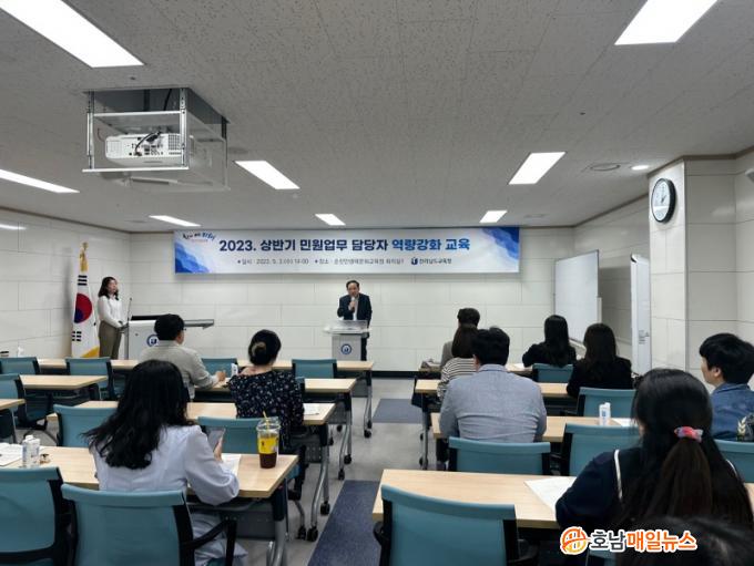 Àü¶ó³²µµ±³À°Ã»Àº À̳¯ ±¹¹Î½Å¹®°í ¹Î¿ø¾÷¹« ó¸® ½Ã ÁÖ¿ä Áؼö»çÇ×°ú ÇàÁ¤Á¤º¸ °øµ¿ÀÌ¿ë ½Ã½ºÅÛ ¿î¿µ ¸Å´º¾ó ¹× ¹Î¿øÀÎ °³ÀÎÁ¤º¸ º¸È£ ¹æ¾ÈÀ» ¾È³»Çß´Ù. ¶Ç, ¡®¹Î¿ø ´ã´çÀÚ ½É¸® Ä¡À¯ ¹× ÀçÃæÀü¡¯À̶ó´Â ÁÖÁ¦ÀÇ °ÀǸ¦ ÅëÇØ ¹Î¿ø¼ºñ½ºÀÇ Áú Çâ»óÀ» ¸ð»öÇß´Ù.