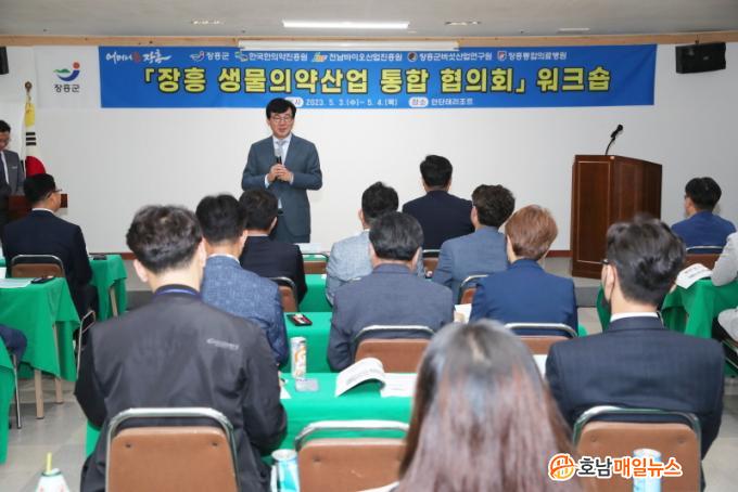 »ý¹° »ê¾÷°ú À£´Ï½º °ü±¤ ¿¬°è ¹ßÀü ¹æ¾È¿¡ ´ëÇÑ Àü¹®°¡ ÀÚ¹®°ú Á¶¼®ÈÆ ÀåÈﱺ ºÎ±º¼ö ÁÖÀç ¡®ÀåÈï »ý¹°ÀǾà»ê¾÷ ¹ßÀü 5°³³â Á¾ÇÕ°èȹ¡¯ Âø¼ö¸¦ À§ÇÑ ¿¬±¸±â°ü ÀÇ°ß ¼ö·Å ¹× Åä·ÐÀ» ³¡À¸·Î ¿öÅ©¼óÀ» ¸¶¹«¸®Çß´Ù.
