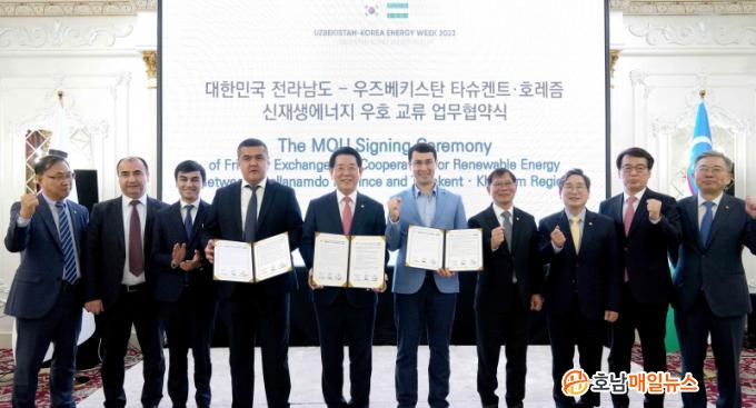 Çù¾à¿¡ ÀÌ¾î °³ÃÖµÈ ¿¡³ÊÁöÆ÷·³°ú ¼öÃâ»ó´ãȸ´Â Àü³²µµ ¼ÒÀç ¿¡³ÊÁö±â¾÷ 8°³ »ç¿Í ¿ìÁŰ½ºÅº¿¡¼ Ȱµ¿ ÁßÀÎ ´Ù¼öÀÇ ÇØ¿Ü¹ÙÀ̾ Âü¿©Çß´Ù. ƯÈ÷ ¿¡³ÊÁöÆ÷·³¿¡¼± ¾ÆºêµÑ¶ó ¿ÀŸº¸¿¹ÇÁ ¿ìÁŰ½ºÅº ¿¡³ÊÁöÈ¿À²°ü¸®±¹ÀåÀÌ ¿ìÁŰ½ºÅº ¿¡³ÊÁöÁ¤Ã¥À» ¹ßÇ¥ÇÏ°í ¿ÀÀÍÇö Àü³²Å×Å©³ëÆÄÅ© ¿øÀåÀÌ ±¹³» ÃÖ´ë 8.2GW ÇØ»ódz·Â µî Àü³²µµÀÇ Àç»ý¿¡³ÊÁö Á¤Ã¥À» ¼Ò°³ÇØ Å« °ü½ÉÀ» ²ø¾ú´Ù.