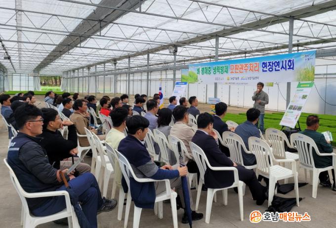 Àü³²³ó¾÷±â¼ú¿ø ÁÖ°üÀ¸·Î ÃßÁøµÈ À̹ø ¿¬½Ãȸ¿¡´Â ¸ðÆÇ °üÁÖ󸮿¡ °ü½É ÀÖ´Â Áö¿ª ³ó°¡¿Í ³óÇù °ü°èÀÚ, ´ã´ç °ø¹«¿ø µî 100¿© ¸íÀÌ Âü¼®Çß´Ù. ±â¼ú ½Ã¿¬¿¡ À̾î ÁúÀÇÀÀ´ä ½Ã°£À» °¡Áø ³ó¾÷ÀεéÀº ¡°ÀÌ»ó ±âÈÄ·Î ÀÎÇØ º´ÇØÃæ ¹ß»ý°ú ¹æÁ¦½Ã±â ¿¹ÃøÀÌ ¾î·Á¿ü´Âµ¥, °üÁÖó¸® ±â¼úÀ» ÅëÇØ ºÎ´ãÀ» ´ú°Ô µÆ´Ù¡±¸ç È£ÆòÇß´Ù.
