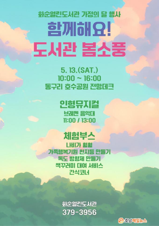 üÇèºÎ½º¿¡¼´Â ¾î¸°À̵éÀÌ Á÷Á¢ ³ªºñ Àå³°¨À» ¸¸µé¾îº¸´Â ¡®³ªºñ°¡ ÈÎÈΡ¯, ¡®°¡Á· Çູ ±â¿ø ÇÑÁöµî ¸¸µé±â¡¯, ¡®µ¶µµ ¼®°í¹æÇâÁ¦ ¸¸µé±â¡¯, ¡®°£½ÄºÎ½º¡¯ µî ´Ù¾çÇÑ Ã¼ÇèÇà»ç°¡ ¾î¸°À̵éÀÇ ¹ß°ÉÀ½À» ºÙÀâÀ» ¿¹Á¤ÀÌ´Ù. ƯÈ÷ ȼø¿¸°µµ¼°ü¿¡¼ ¿î¿µÇÏ´Â ¡®Ã¥²Ù·¯¹Ì ´ë¿© ¼ºñ½º¡¯ÀÇ È«º¸¸¦ À§ÇÑ °ø°£µµ ¸¸µé¾îÁö´Âµ¥ ¼ºÀΰú û¼Ò³â, ¾î¸°ÀÌ µî ´Ù¾çÇÑ ¿¬·É´ë¿Í ÃëÇâÀ» °í·ÁÇÑ 15°³ÀÇ Ã¥²Ù·¯¹Ì ´ë¿©°¡ ÇöÀå¿¡¼ ÀÌ·ç¾îÁú ¿¹Á¤ÀÌ´Ù.