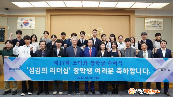 Áö³ 4ÀÏ ¿¸° ÀåÇÐ±Ý ¼ö¿©½Ä¿¡´Â ±èÀçö ¸í¿¹È¸Àå, ¹ÚÀα¸ µ¿¿ø±×·ì ºÎȸÀå, ÀÌ»óÈ£ ³²µµÇм÷ ¿øÀå µîÀÌ Âü¼®ÇßÀ¸¸ç, ´ëÇлý 17¸í¿¡°Ô °¢ 500¸¸ ¿øÀÇ ÀåÇбÝÀ» ¼ö¿©Çß´Ù. Áö³ 16³â µ¿¾È ÀåÇбÝÀ» ¹ÞÀº ÀåÇлý ¼ö´Â ÃÑ 191¸íÀ̸ç, ÀåÇбÝÀº ¾à 9¾ï 1õ750¸¸ ¿ø¿¡ ´ÞÇÑ´Ù.