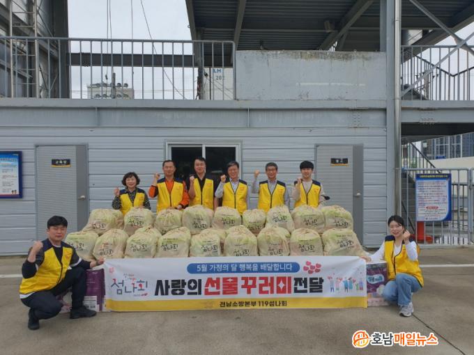 119¼¶³ªÈ¸¿¡¼´Â 5¿ù °¡Á¤ÀÇ ´ÞÀ» ¸Â¾Æ Ȧ¸ö ¾î¸£½Å µî¿¡°Ô Á¶±ÝÀ̳ª¸¶ ÈûÀÌ µÇ¾î µå¸®±â À§ÇØ ÀÚü Á¦ÀÛÇÑ ²Ù·¯¹Ì¿¡ ½Ò, ÈÞÁö, ºñ´© µî »ýÇÊǰÀ» ´ã¾Æ Àü´ÞÇß´Ù. À̳¯ ºÀ»çȰµ¿¿¡´Â ¼¶³ªÈ¸ ȸ¿ø 19¸íÀÌ Âü¿©ÇßÀ¸¸ç, 119¼¶³ªÈ¸´Â Àü³²¼Ò¹æ Á÷À嵿ȣȸ·Î ȸ¿ø 92¸íÀÌ È°µ¿ ÁßÀÌ´Ù.
