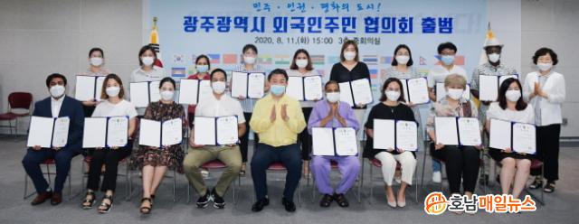 À̸¦ À§ÇØ ±¤Áֽô Çѱ¹¾î°¡ °¡´ÉÇÏ°í ´ëÇѹα¹ ü·ù ÀÚ°ÝÀÌ ÀÖ´Â ¿Ü±¹Àΰú °áÈ¥À̹ÎÀÚ °¡¿îµ¥ ÀÏÁ¤ ±â°£ Çѱ¹°ú ±¤ÁÖ¿¡ °ÅÁÖÇϰí ÀÖ´Â 18¼¼ ÀÌ»ó ¿Ü±¹ÀÎÁÖ¹ÎÀ» ´ë»óÀ¸·Î ÀÚÄ¡±¸ ´Ù¹®È°¡Á·Áö¿ø¼¾ÅÍ, Áö¿ª ´ëÇÐ, ¿Ü±¹Àγ뵿ÀÚÁö¿ø¼¾ÅÍ µîÀÇ ÃßõÀ» ¹Þ¾Æ ÃÑ 19¸íÀÇ À§¿øÀ» ¼±Á¤Çß´Ù.