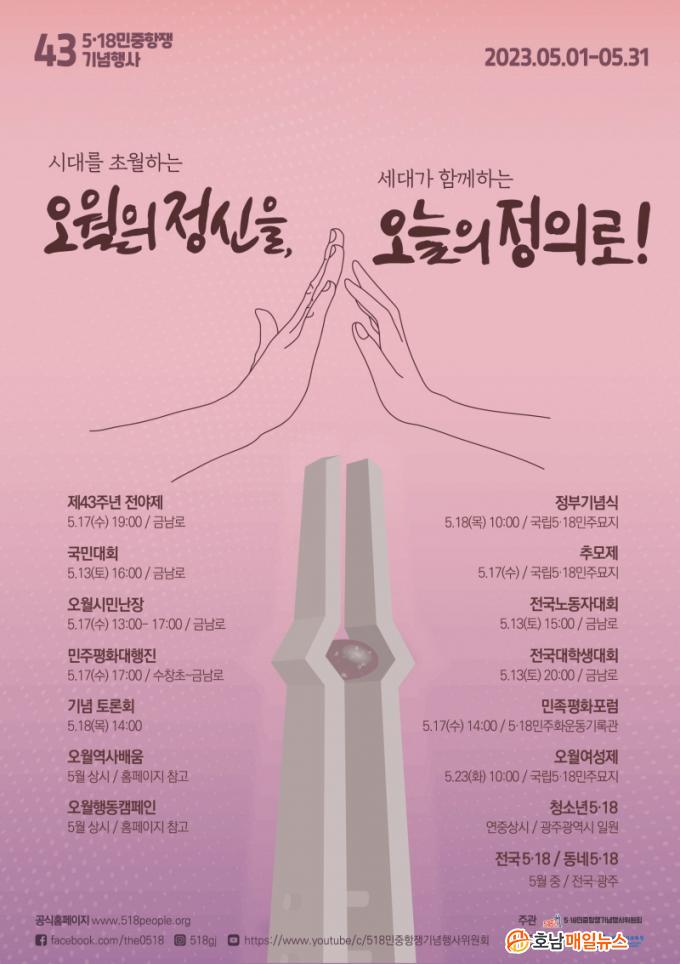 62°³ Âü°¡´Üü·Î ±¸¼ºµÈ ¡®Á¦43ÁÖ³â 5¡¤18¹ÎÁßÇ×Àï±â³äÇà»çÀ§¿øÈ¸¡¯(ÀÌÇÏ Çà»çÀ§)´Â Áö³ 3¿ù ½Ã¹Î °ø¸ð¸¦ ÅëÇØ ¡®¿À¿ùÀÇ Á¤½ÅÀ», ¿À´ÃÀÇ Á¤ÀÇ·Î!¡¯¸¦ ¿ÃÇØ ±â³äÇà»ç °ø½Ä±¸È£(½½·Î°Ç)·Î ¼±Á¤Çß´Ù.