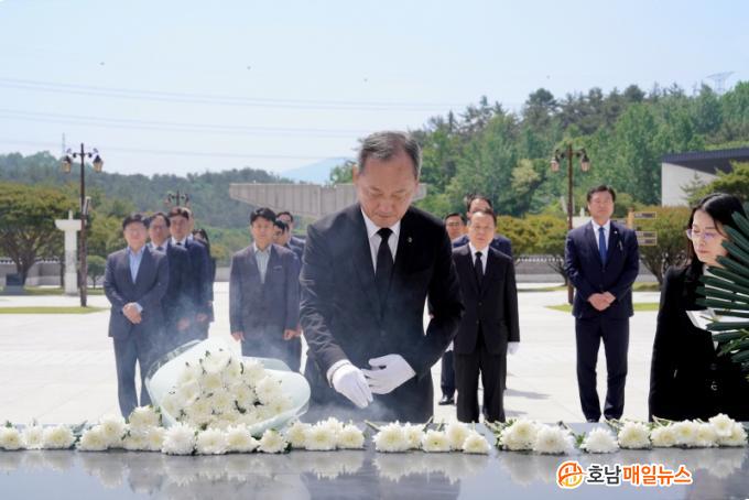 Á¶¼±´ëÇб³(ÃÑÀå ¹Î¿µµ·)¿¡ µû¸£¸é ±èÀ̼ö ÀÌ»çÀå°ú ¹Î¿µµ· ÃÑÀåÀ» ºñ·ÔÇÑ ´ëÇÐ ±³¹«À§¿øµéÀº 10ÀÏ ¿ÀÀü 10½Ã30ºÐ ±¹¸³ 5¡¤18¹ÎÁÖ¹¦Áö¸¦ ã¾Æ Âü¹èÇß´Ù.